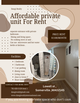 Affordable 1 bedroom unit ( technically basement  ) if you don’t cook .