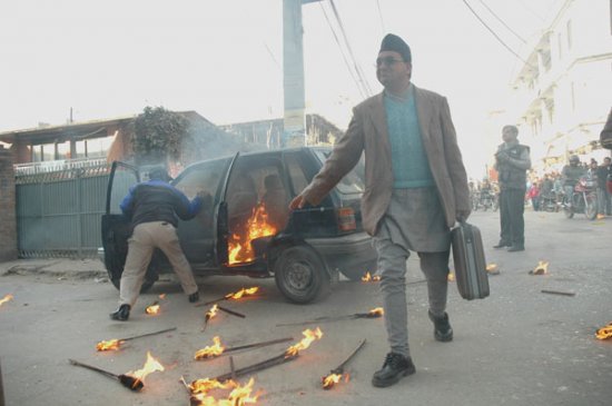 One Nepalese protestor never understand is things you are vandalizing is bought from our tax money and will be replaced by our tax money. In other words you are ripping your own property not governments...