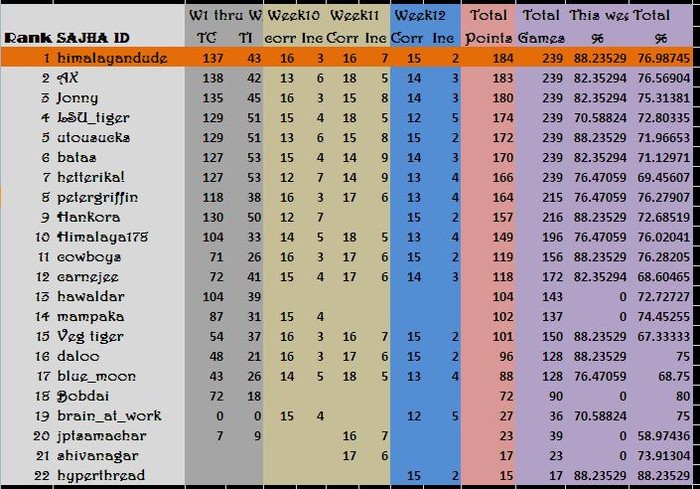 Congrats!! Himalayandude for being on the top spot for 3 consecutive weeks.