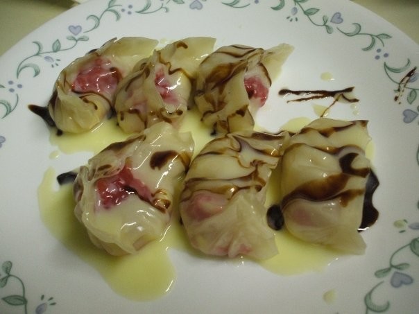 Place raspberries. Close it like kothay or regular round MoMo - what ever you prefer since it will be tasty anyway. (make sure you dont have any leaks)