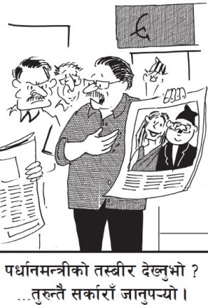 The Prime Minister of Nepal got all touchy feely with Geri Halliwell at the National Campaign to End Gender-based Violence the other day. Makunay was seen joking and fooling around with Ginger Spice throughout, oblivious of the fact that he was on national tv. Spice held his hand and put her hands on his shoulder several times, almost soft-massaging him. At one point the PM got up abruptly to go to the loo (yes, even premiers have to go) leaving Geri quite confused. In her speech, Geri called him a "21st century man". During the group photo session at the end, Geri fondly put her arms around MKN and the 5' 1" Prime Minister of Nepal reciprocated, but ended up grasping her love handles, according to our eye witness. Let's not forget Ginger was famous for pinching Prince Charles' royal ass when she was still a Spice Girl.nepalitimes.com