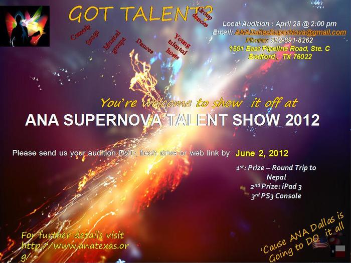 Welcome to Texas and to our 30th Mega Gala ANA Convention. We are committed to give everyone TEXAS-SIZE-FUN.  We want this ANA Convention to be one of the most memorable  events for our younger generations, as well as for those dedicated parents and family members who have been taking their kids to/from music, dance and acting/theater lessons. We are looking for all sorts of talents including musicians, comedians, dancers and acting/theater.