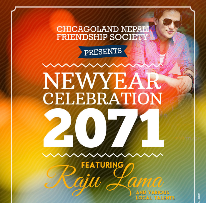Dear all Namaste, Chicagoland Nepali Friendship Society wishes a very Happy New Year 2071 [नयाँ वर्ष २०७१ को शुभकामना] you and all your family members. We hope this New Year may bring happiness, peace, good health, successes, long life and prosperity. We would like to announce Nepali calendar New Year 2071 Celebration on April 13th 2014[Sunday], 6:00 PM onward at Bombay Hall, 2448 W Devon Ave, Chicago, IL 60659.We invite you, your family members and friends to participate in this event.We will be enjoying Nepali songs and dances with well-known national artist RAJU LAMA (MONGOLIAN HEART) and other local talents.