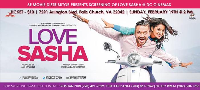 Screening of Nepali movie "LOVE SASHA" on February 19th, 2017 @ 2PM @ DC Cinemas in Falls Church.