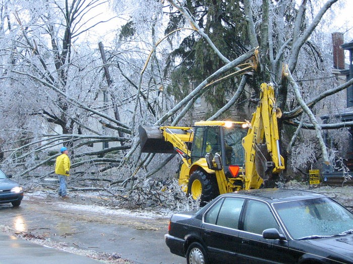 There was no power most of the way. One needed to drive extremely carefully, as it was not only pitch dark but also the road was slippery and often blocked by trees. Traffic lights needed to be treated as stop signs. As we exited the car in front of his house, it looked like a scene from a horror movie. The ground looked whitish with snow and the tree branches looked as if they were made of glass. Except once during a lightening it looked pitch dark elsewhere. There were also sounds from collapsing trees. The mayor of the city declared a state of emergency.